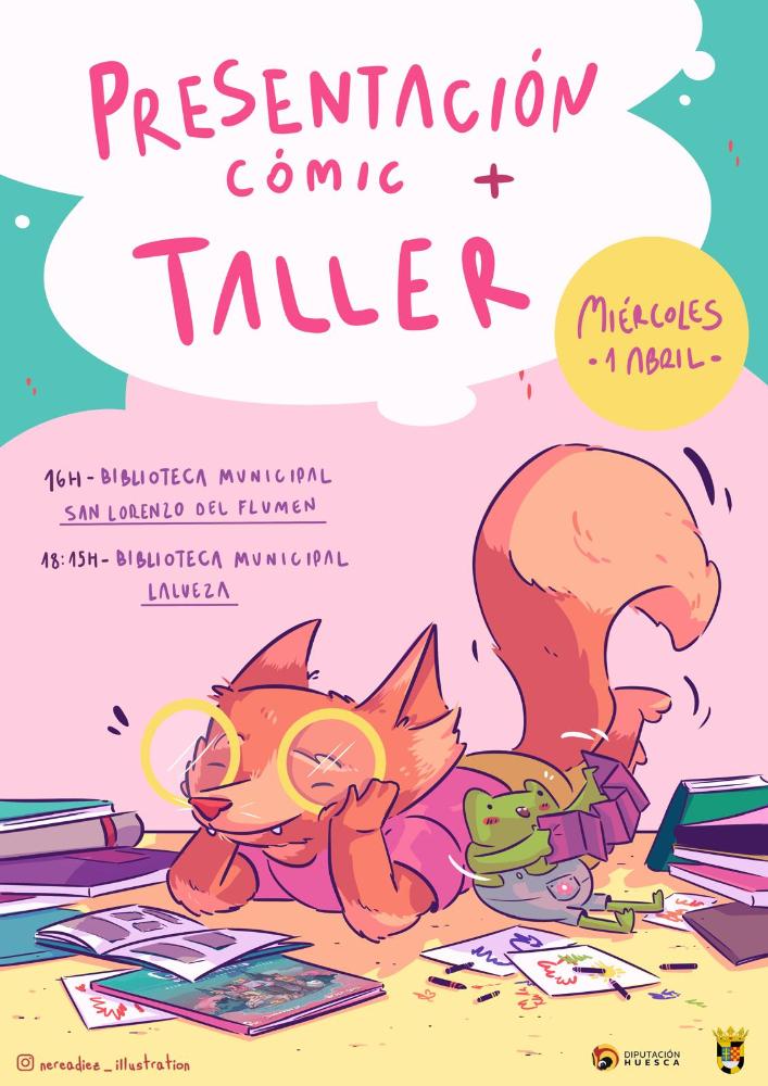 Actividad en Biblioteca de Lalueza y San Lorenzo del Flumen Whatsapp: Actividad en Biblioteca de Lalueza y San Lorenzo del Flumen Fecha 01 abril 2026 Presentación COMIC + TALLER DE ILUSTRACIÓN. En San Lorenzo a las 16.00 h. y en Lalueza a las 18.15 h. Galería imágenes