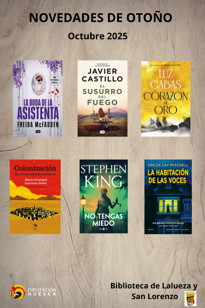 Novedades de otoño, nuevos títulos, en la Biblioteca de Lalueza y San Lorenzo del Flumen.