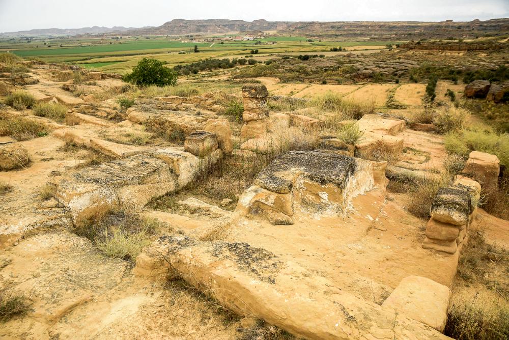 - El templo, dedicado a san Pedro, ocupa el lado noroeste de una reducida plataforma rocosa parcialmente amurallada en la que podemos hallar tumbas antropomorfas "de repoblación"